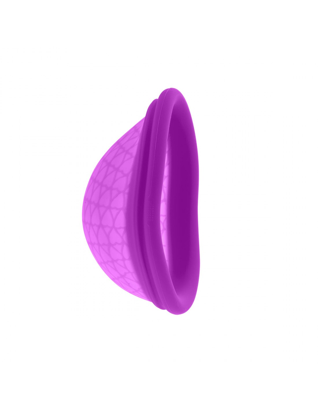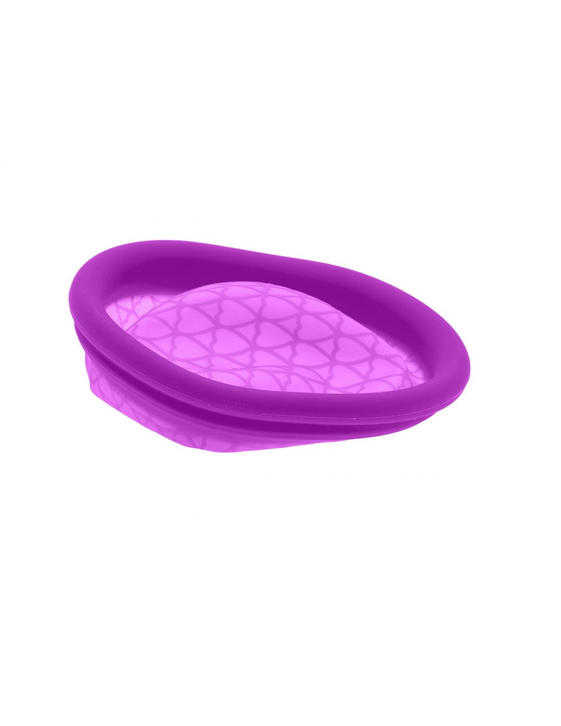 Copa menstrual de color lila diseñada como método alternativo a los tampones, compresas y demás sistemas menstruales desechables. Tiene la misma función que la copa menstrual convencional aunque con un diseño y una función un tanto diferente, en forma de disco.