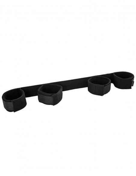 Barra separadora de esclavitud, diseñada para bloquear totalmente las 4 extremidades e ideal para los juegos bondage. Compuesto por una barra rígida de fibra de vidrio cubierta de tela, con 2 esposas y 2 tobilleras. Muy fácil de colocar y un complemento diferente para los juegos íntimos.