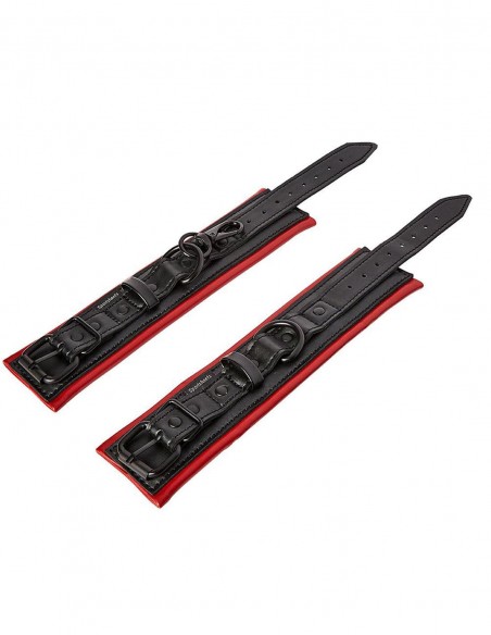 Imitan al cuero con un diseño muy potente que combina el negro con el rojo. Se atan a modo de cinturón, totalmente regulables a muchos tipos de cuerpo y combinables con otros elementos de ataduras. Incluso se pueden usar como tobilleras para inmovilizar las piernas. Se unen a través de ganchos, dejando así a muy poca distancia las extremidades. Incluye una bolsa de viaje. Jugar siempre con comunicación y responsabilidad.
