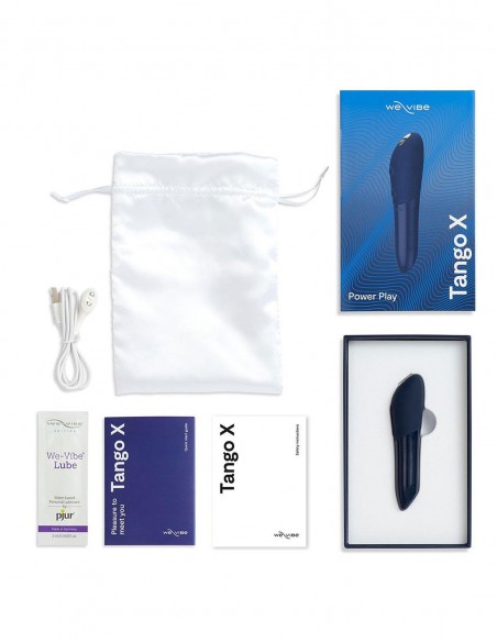La Tango X es una balita vibradora sumamente potente y muy elegante. Nuevo diseño de la Tango de We Vibe ideal para estimular las zonas erógenas. Botones muy intuitivos y cómodos de controlar. Fabricado en ABS y silicona médica e hipoalergénica apta para el cuerpo, tacto suave y brillante. Con un agarre más firme gracias al material del mango. Punta en ángulo para una mayor precisión de estimulación. Potente motor de vibración y muy silencioso. Lleva incorporado 8 modos de vibración. Es recargable con cable USB  y totalmente sumergible. Dispone de la opción de bloqueo para un transporte más seguro. Apto para estimular cualquier zona externa, ya sea pezones, clítoris, zona perineal, etc. No apto para penetración anal. Para hacer más fácil su uso basta con un poco de lubricante a base de agua. La nueva Tango X es el juguete ideal para jugar en solitario o en compañía, muy versátil y con un gran abanico de posibilidades de juego. La caja contiene: el vibrador, cable de de alimentación USB, bolsita de almacenamiento y manual de uso.