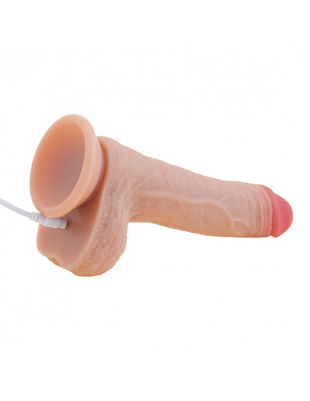 Dildo hiper realista con vibración controlable a través de control remoto, de color beige y fabricado en silicona médica segura para el cuerpo. Incorpora venas por todo el eje, pliegues en la punta, testículos y un glande muy pronunciado y rosado. Este dildo incluye 10 modos de vibración juntamente con 5 modos de rotación en la punta para ofrecer una mayor estimulación. Tiene muy buena calidad y su base está formada por una ventosa que se adhiere a cualquier superficie plana. Es recargable con cable USB magnético (Incluido) y totalmente compatible con arnés. Utilizar únicamente lubricante de base acuosa ya que los de base de silicona podrían dañar el producto. Lavar con agua tibia y jabón PH neutro o con un limpiador específico de juguetes eróticos. Sus medidas son: 12,5 cm (insertables) 3,8 cm (diámetro). Características principales: - Dildo hiper realista. - Color beige. - Fabricado con silicona médica. - Venas en el eje. - Pliegues en la punta y testículos. - Glande muy pronunciado. - 10 modos de vibración. - 5 modos de rotación. - Buena calidad. - Base con ventosa. - Recargable, cable USB magnético (incluido). - Compatible con arnés.