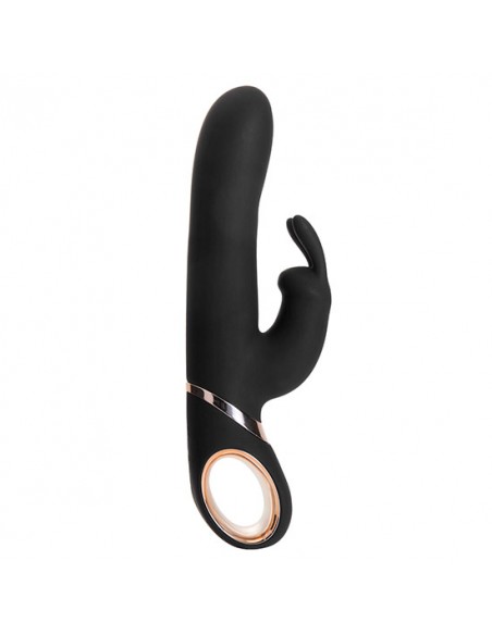 Naughty Rabbit es un vibrador rabbit de doble estimulación de color negro con detalle dorado, fabricado con silicona médica y ABS, de tacto suave y agradable. Su eje es liso y recto, acabado en punta redondeada. Incorpora 2 motores, uno en el rabbit con 13 modos de vibración para estimular el clítoris y otro en el eje con 5 velocidades de rotación para masajear el punto G y proporcionar múltiples sensaciones. Es sumergible y recargable con cable USB (incluido). Dispone de un cómodo agarre en la base para poder manejar mejor el juguete y direccionar las zonas a estimular. Su tiempo de carga es de 4h para 70 minutos de uso. Se recomienda lavar con agua tibia y jabón PH neutro o utilizar un limpiador específico de juguetes eróticos. Utilizar únicamente lubricante de base acuosa ya que los de base de silicona podrían dañar los productos.