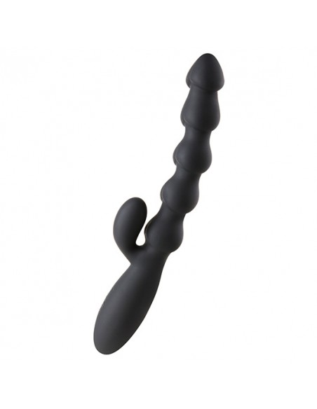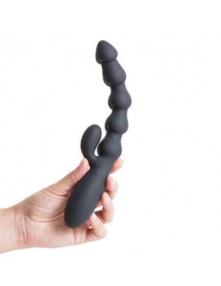 Vibrador rabbit con un diseño especial y muy versátil, que estimula de manera simultanea. Su eje está formado por bolas en forma de corazón invertido, con una punta cónica que facilita la penetración. Se trata de un eje flexible y con un flexo en su interior. El rabbit es simple, flexible y muy pequeño. Se trata de un vibrador pensado para estimular de forma simultanea y con penetraciones bastante profundas. Está pensado para penetraciones anales con un extra de estimulación del rabbit, que acaricia la zona perineal. Fabricado en silicona muy suave. Tiene un mango de cómodo agarre con dos botones de control y posee un total de 3 intensidades de vibración y 4 patrones. Es recargable con cable USB (incluido), sumergible y muy fácil de limpiar. Se recomienda el uso de lubricante a base de agua para mejorar la experiencia y hacerla más agradable.