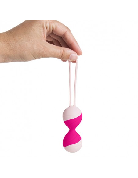Pack de 3 bolas Kegel diseñadas para ejercitar el suelo pélvico. Dos de ellas son sin vibración y con una bolita interna que se mueve al ritmo del movimiento, la tercera posee vibraciones intensas que no solamente ejercitaran la musculatura, sino que también podrán estimular de manera interna. Está formada por una bola individual, la menos pesante, y dos dobles más pesantes y una de ellas es la vibradora. Ideal para ir ejerciendo de manera gradual. La bola doble vibradora se puede controlar desde el propio juguete o desde un control remoto, haciéndolo así un producto mucho más cómodo y discreto. Posee 10 modos de vibración, son sumergibles y muy fáciles de limpiar. Es recargable con cable USB (incluido) y el control remoto requiere de una pila CV2032. Un juguete muy completo, versátil y discreto ante todo.