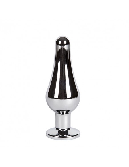 Plug de metal en color plateado diseñado para la estimulación anal. Posee una punta redondeada y cónica para facilitar la penetración, ideal para personas que quieran iniciarse en la estimulación anal. En la base tiene un detalle tallado a modo diamante de color rojo brillante, que le da un toque glamuroso. La base es firme y segura. Se pueden obtener sensaciones adicionales al poder jugar con la temperatura gracias a las propiedades del metal. Se trata de un juguete muy fácil de limpiar y totalmente sumergible. Su diseño y su forma lo convierten en una pieza muy delicada y fina. Tiene una longitud insertable de 8,5 cm. Totalmente apto para ser usado con cualquier lubricante, ya sea a base de silicona o de agua, y mejorar así la fricción.