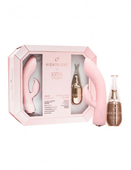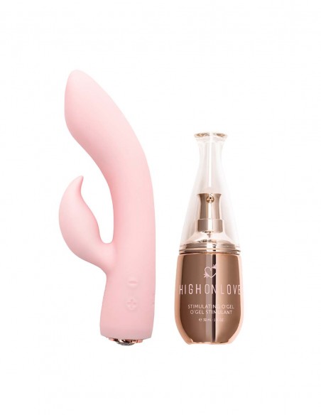Objects of Pleasure de HighOnLove® es un increíble kit de placer formado por un vibrador rabbit de doble estimulación y el estimulante Stimulating O'Gel.