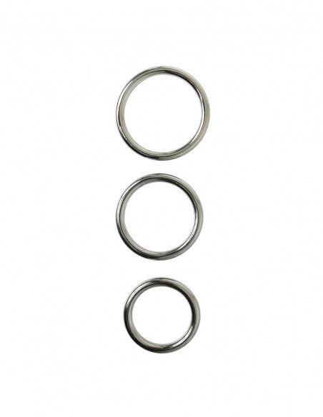 | Pack de tres anillas de metal perfectas para la presión de la base del pene y así prolongar la eyaculación. Ayudan a potenciar la erección y así intensificar la erección. Pensado para personas avanzadas en el uso de juguetes eróticos. |