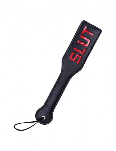 | Pala para juegos de azotes bondage. Con un bonito estampado escrito que pone SLUT. Un complemento perfecto para los juegos BDSM e iniciarse en el mundo del bondage. |