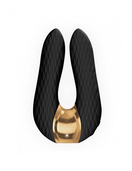 Con un diseño elegante, refinado, delicado y distinguido, siguiendo la línea de la marca con temática y detalles orientales. El toque de glamour queda sellado por las partes en color dorado y por los suaves y sutiles relieves en formas geométricas y lineales que visten el juguete. Tiene una estructura muy ergonómica, con formas que se acomodan a la anatomía de la mano para direccionar mejor el juguete. Su forma está pensada para estimular suavemente o creando presión gracias a sus dos brazos ligeramente flexibles, con un motor cada uno no independientes.
