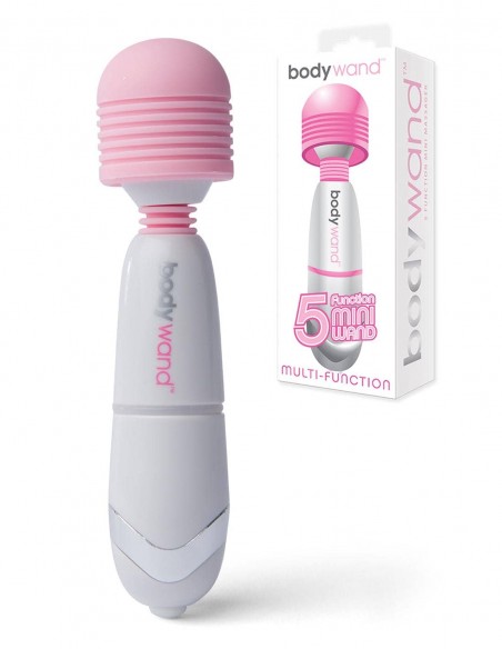 Bodywand Mini 5 Function es un mini masajeador, discreto y ligero, perfecto para viajes y placeres en movimiento. Es ideal para masajes en zonas determinadas o para la estimulación de zonas erógenas (clitoris, pezones, testículos, etc). Funciona con un juego de pilas LR44, tiene un cabezal flexible y es muy silenciosa. Posee un único botón de control para recorrer entre sus 5 modos de vibradción.