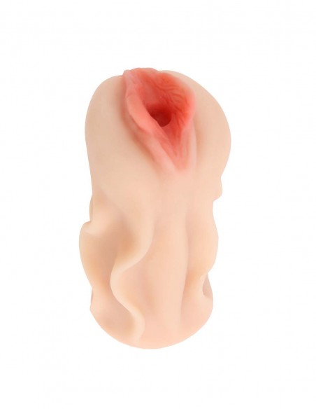 Se trata de una manga fabricada en suave y agradable TPE, especialmente elástico y muy blando, adaptándose así a gran variedad de cuerpos. Con diseño realista, de labios pronunciados y marcando la vulva en tono rosado, con un orificio que penetra en la cavidad interna, repleta de texturas para aumentar las sensaciones. Incluye orificio de salida. Se adapta muy bien a la palma de la mano para tener un control firme de la estimulación. Es totalmente sumergible y muy fácil de limpiar.