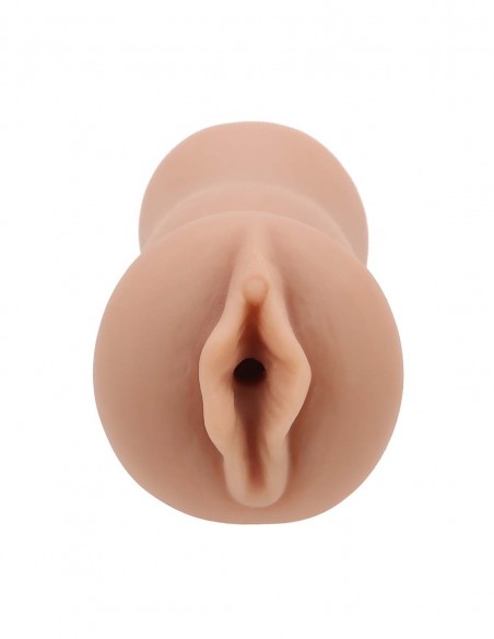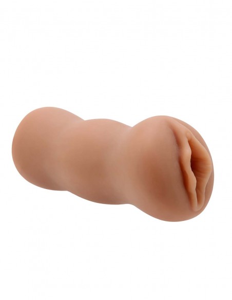 Se trata de una manga fabricada en suave y agradable TPE, especialmente elástico y muy blando, adaptándose así a gran variedad de cuerpos. Con diseño realista, de labios pronunciados y marcando la vulva en tono rosado, con un orificio que penetra en la cavidad interna, repleta de texturas para aumentar las sensaciones. Incluye orificio de salida. Se adapta muy bien a la palma de la mano para tener un control firme de la estimulación. Es totalmente sumergible y muy fácil de limpiar.