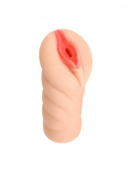 Se trata de una manga fabricada en suave y agradable TPE, especialmente elástico y muy blando, adaptándose así a gran variedad de cuerpos. Con diseño realista, de labios pronunciados y marcando la vulva en tono rosado, con un orificio que penetra en la cavidad interna, repleta de texturas para aumentar las sensaciones. Incluye orificio de salida. Se adapta muy bien a la palma de la mano para tener un control firme de la estimulación. Es totalmente sumergible y muy fácil de limpiar.