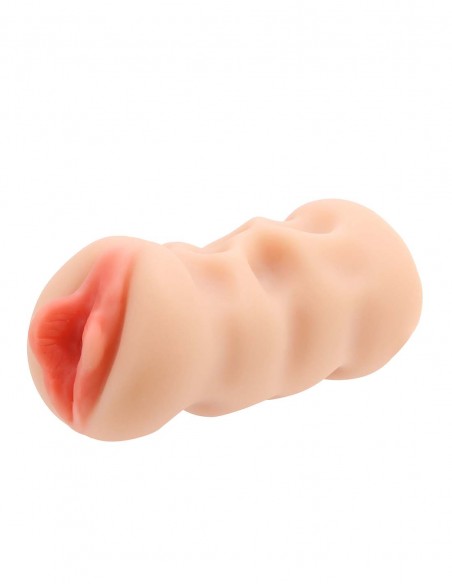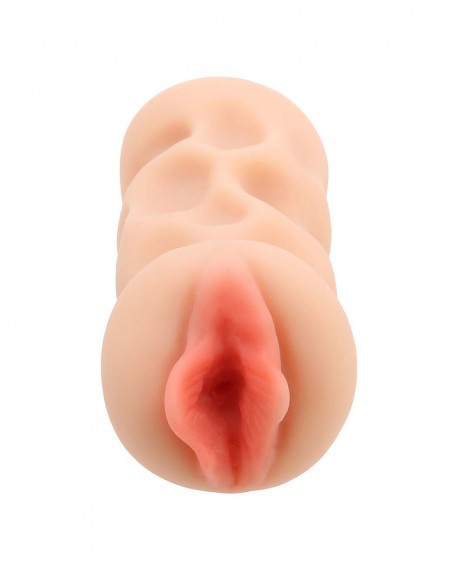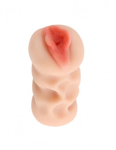 Se trata de una manga fabricada en suave y agradable TPE, especialmente elástico y muy blando, adaptándose así a gran variedad de cuerpos. Con diseño realista, de labios pronunciados y marcando la vulva en tono rosado, con un orificio que penetra en la cavidad interna, repleta de texturas para aumentar las sensaciones. Incluye orificio de salida. Se adapta muy bien a la palma de la mano para tener un control firme de la estimulación. Es totalmente sumergible y muy fácil de limpiar.