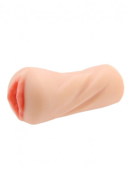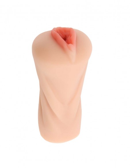 Se trata de una manga fabricada en suave y agradable TPE, especialmente elástico y muy blando, adaptándose así a gran variedad de cuerpos. Con diseño realista, de labios pronunciados y marcando la vulva en tono rosado, con un orificio que penetra en la cavidad interna, repleta de texturas para aumentar las sensaciones. Incluye orificio de salida. Se adapta muy bien a la palma de la mano para tener un control firme de la estimulación. Es totalmente sumergible y muy fácil de limpiar.