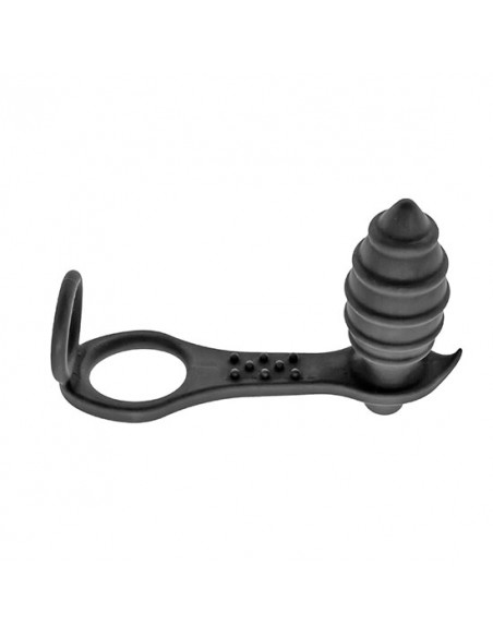 Throttle es un plug anal con vibración unido a una anilla doble para el pene y testículos, para una estimulación simultánea. El plug está diseñado con estrías en relieve alrededor del eje y en forma cónica, para facilitar la inserción. Está unido a una anilla doble, pensada para presionar el pene y los testículos y así potenciar y prolongar la erección. Las anillas son elásticas y se adaptan de manera óptima al cuerpo. Elaborado todo en silicona suave y agradable, en color negro. Incorpora una bala vibradora que requiere de una pila AAA (incluida) y fabricada en ABS, del mismo color. Con 10 potentes modos de vibración que recorren todo el plug juntamente con la unión con las anillas, que queda acariciando la zona perineal. Es a prueba de salpicaduras y un juguete ideal para ser utilizado en solitario o en compañía, abriendo un mundo de nuevas y excitantes experiencias. También es apto a su uso en modo manos libres. Se recomienda no llevar las anillas puestas más de 30 min. El uso de lubricante a base de agua para el plug y para la colocación de las anillas ayudará a mejorar su uso de manera exponencial.