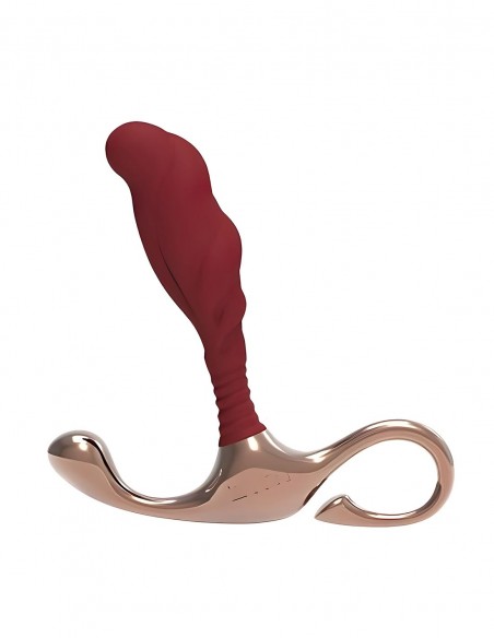 Fabricado en suave y agradable silicona y aleación de zinc apto para el cuerpo. Su eje es curvado y texturizado, ideal para el masaje directo a la zona P. Tiene una base ancha para fijar con más seguridad su uso y acabado en un agarre firme para acomodar los dedos y direccionar mejor el estímulo.