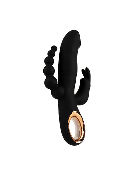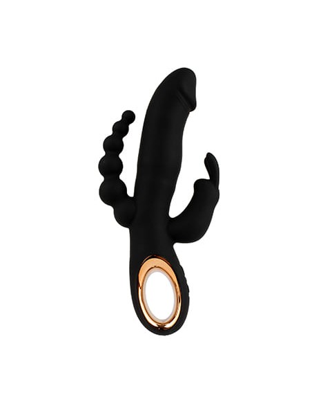 Vibrador rabbit triple semi-realista diseñado especialmente para la penetración vaginal, anal y la estimulación directa del clítoris, añadiendo función de empuje.