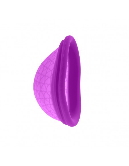 Copa menstrual de color lila diseñada como método alternativo a los tampones, compresas y demás sistemas menstruales desechables. Tiene la misma función que la copa menstrual convencional aunque con un diseño y una función un tanto diferente, en forma de disco.