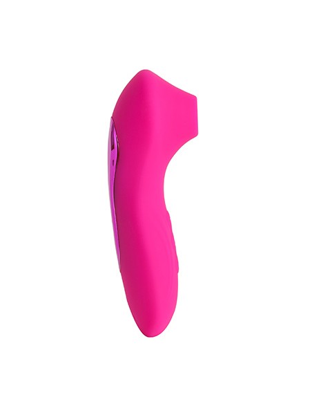 De diseño compacto, ligero y muy ergonómico, ya que se adapta a la palma de la mano para proporcionar un agarre cómodo. Gracias a su tamaño es ideal para llevarlo y transportarlo a cualquier lugar discretamente. No succiona como tal, sino que libera a través de pequeños golpecitos ondas de presión que al entrar en contacto con la piel crean una profunda y potente sensación de succión. Fabricado en suave silicona y con un detalle en ABS de color brillante. Posee tres botones de control y 10 niveles de intensidad que recorren desde la más suave hasta la más estridente. Ideal también para estimular otras partes erógenas externas como los pezones o la zona perineal. Es recargable con cable USB (incluido), sumergible y muy fácil de limpiar.