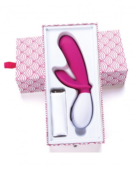 | Vibrador rabbit en color rosa y blanco diseñado para la estimulación del punto G y el clítoris de manera simultanea. Fabricado en ABS apto para el cuerpo y silicona en el eje y rabbit. El eje es semi curvado y un poco más ancho en la punta. Incorpora 7 patrones de potentes vibraciones, a prueba de salpicaduras y recargable con cable USB (incluido). Su tiempo de carga es de 2 horas y 50 min y su tiempo de uso es de 2 horas. Incluye también una bolsa de satén para su transporte. Características principales: - Vibrador rabbit. - Estimulación simultanea del Punto G y clítoris. - Fabricado en ABS y silicona. - Muy cómodo. - Eje semi curvado. - Incorpora 7 patrones de vibración. - A prueba de salpicaduras. - Recargable cable USB (incluido). - T de carga: 2 h y 50 min. - T de uso: 2 h. - Incluye una bolsa de satén. |